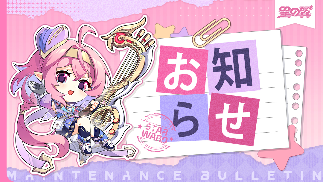 『星の翼』は1月8日10:30(JST)よりアップデートを行います。アップデート終了後、団長の皆様はゲームを再起動することでアップデート終了です。ご理解とご協力を誠にありがとうございます。