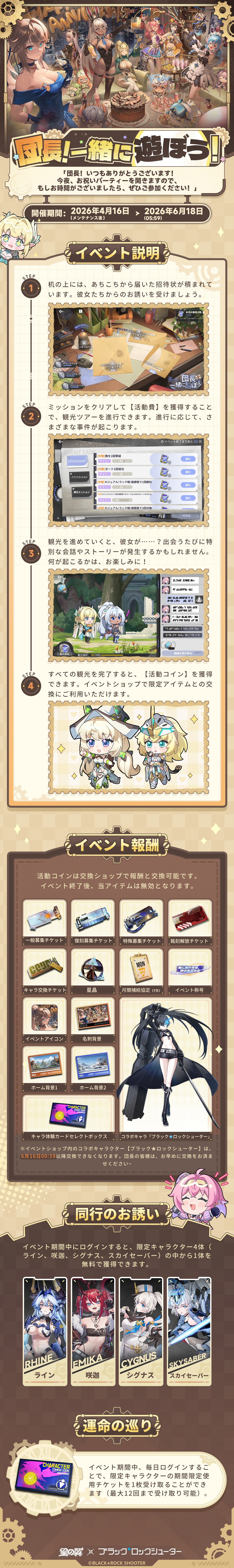 イベントを参加すると、コラボキャラ「ブラック★ロックシューター」1体を無料で入手可能!